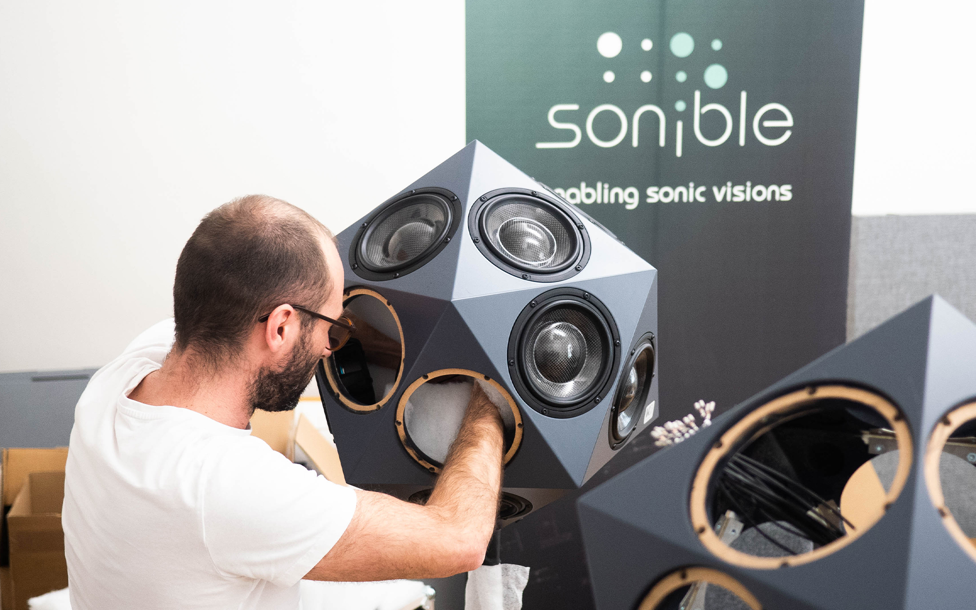 Ralf Baumgartner, Peter Sciri und Alexander Wankhammer, die Gründer von sonible, und Daniel Hojka, Hardware-Spezialist bei sonible, lernten sich bereits im Studium „Toningenieur“ kennen, das als gemeinsamer Studiengang der Technischen Universität Graz und der Kunstuniversität Graz angeboten wurde. Ihre Verbindungen innerhalb der universitären Strukturen und die gemeinsame Begeisterung dafür, neue Ideen in konkrete Lösungen umzuwandeln, führte dazu, dass die vier mit Franz Zotter intensiv an der Marktreife von IKO arbeiteten. Hinzu kam, dass sonible parallel mit dem d:24, einen höchst signaltreuen Mehrkanalverstärker auf den Markt brachten, der sich als ideale Ergänzung für das IKO-Lautsprechersystem herausstellte.
