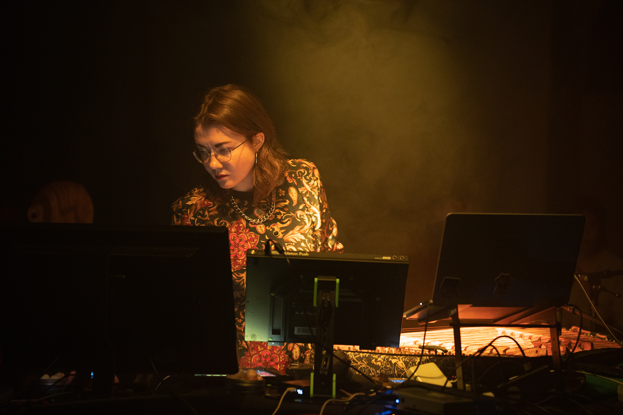 Polina Khatsenka is an audiovisual artist, sound designer, and sonic curator from Minsk, Belarus, based in Ústí nad Labem, Czech Republic. Her work explores sound through audio performance, site-specific installations, and composition. She is currently pursuing a PhD. at Jan Evangelista Purkyně University on “Location vs. presence: aural perception as an existential tool in the world of digital culture.” Collaboration is key in her practice, often working with NGOs, networks, and offspaces in a self-organized way. Her projects expand the perception of intimate and shared environments, addressing invisible physical fields and existential themes. Since starting with spatial audio in 2017 at HSD Düsseldorf, she continued her research at Kunstuniversität Linz, where she has taught the course “Silence. Pause. Quiet.” since 2021 at the Co.Lab Acoustic Ecology. As a founding member of the phonon~ crew, she organizes events showcasing experimental electronic and electroacoustic music in quadraphonic, octophonic, and Ambisonic formats.